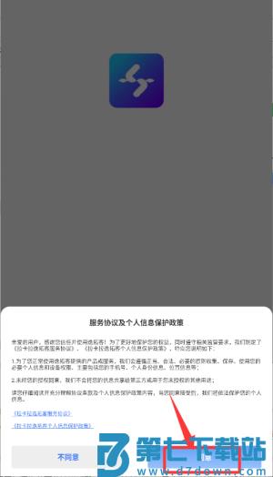 1、阅读并确认拉卡拉服务协议与隐私政策后,点击“同意”选项即可登录应用。