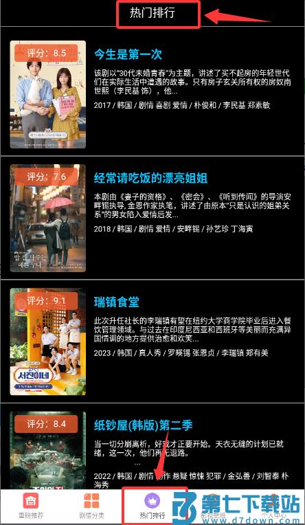 3、点击"热门排行"查看各类影视作品的排名信息。