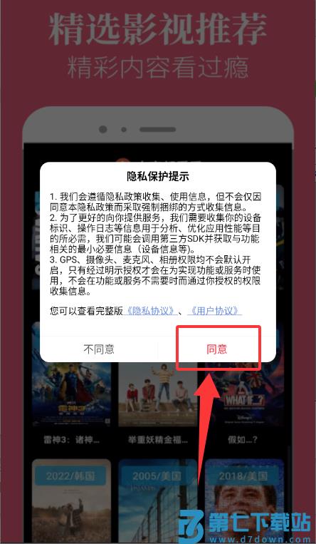 1、在隐私保护提示中点击"同意",即可进入应用。