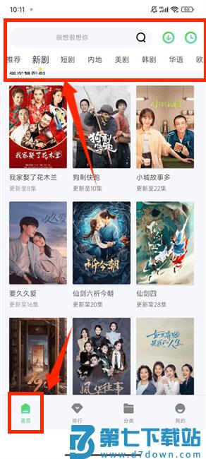 1、启动应用后,在首页可浏览推荐、新剧等分类标签呈现的各类影视内容。
