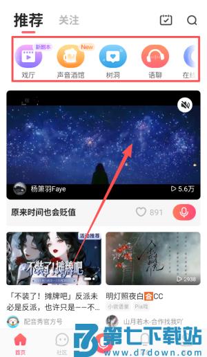 1、打开配音秀app后可以先浏览首页推荐的热门配音视频熟悉不同风格找到感兴趣的内容类型作为入门参考。