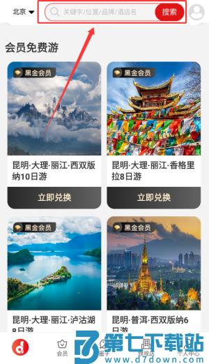 3、首页设有搜索功能,可根据目的地与日期筛选并查找合适的酒店住宿选择。