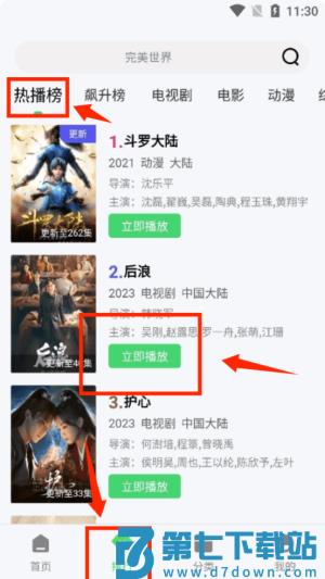 3、切换至热播榜单即可观看“斗罗大陆”等热门剧集,点击立即播放开始观看。
