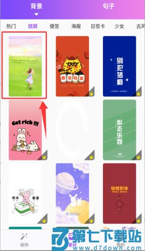 1、在素材板块选择锁屏壁纸背景点开进入。