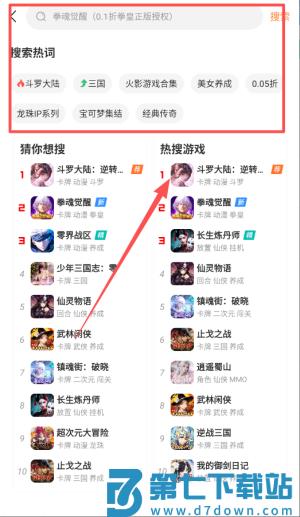 2、点击顶部分类标签按0.1折卡牌三国等类型快速筛选游戏。也可以通过搜索框直接输入游戏名称精准查找想要玩的折扣版本。