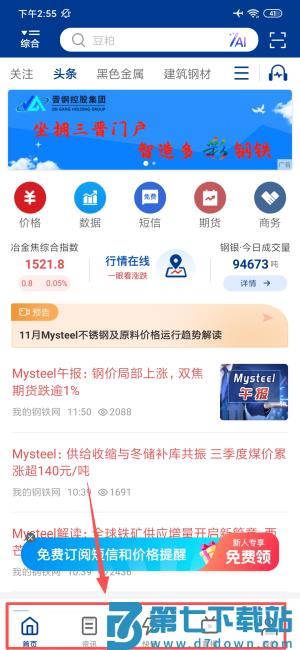 3、查看价格数据入口,浏览钢铁行业相关资讯。