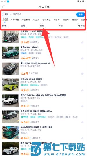 2、进入买二手车界面,可按地区价格等条件筛选车辆列表。