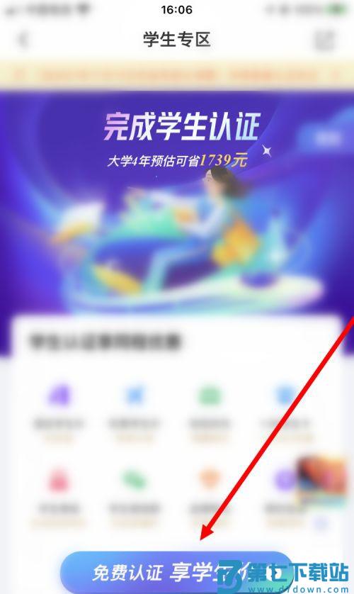 2.点击完后进入学生专区再找到并点击【免费认证】。