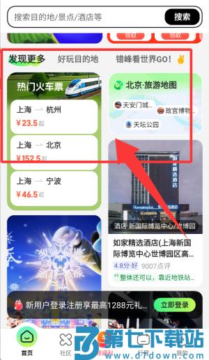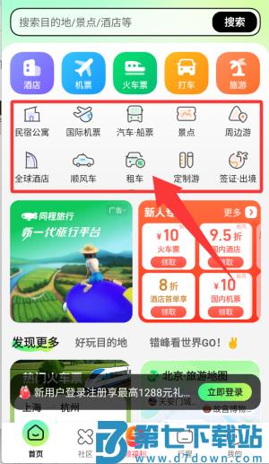 ·酒店:支持国内海外百万余家酒店预订;领大额礼包,享优惠低价,兑专属权益