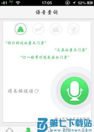 2、在软件上面还可以语音输入搜索门票、飞机票、酒店、高铁等各种服务,如图所示,需要长按说话。