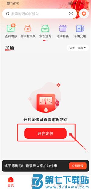 2、进入应用首页后,选择“开启定位”功能以查看周边加油站信息。