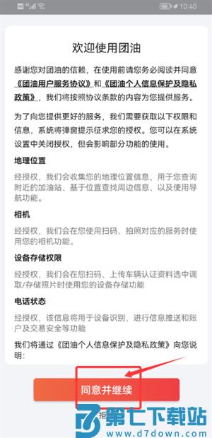 1、在协议提示页阅读条款后,点击“同意并继续”完成授权确认。
