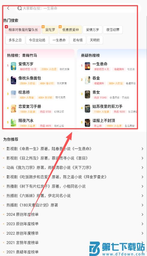 2、在主界面中,您可以浏览热门推荐及排行榜,发现最新和最受欢迎的小说,轻松找到您感兴趣的系列。