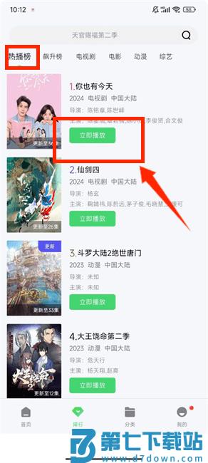 3、切换至排行页的热播榜单,可见“你也有今天”等热门剧集,点击立即播放即可观看。