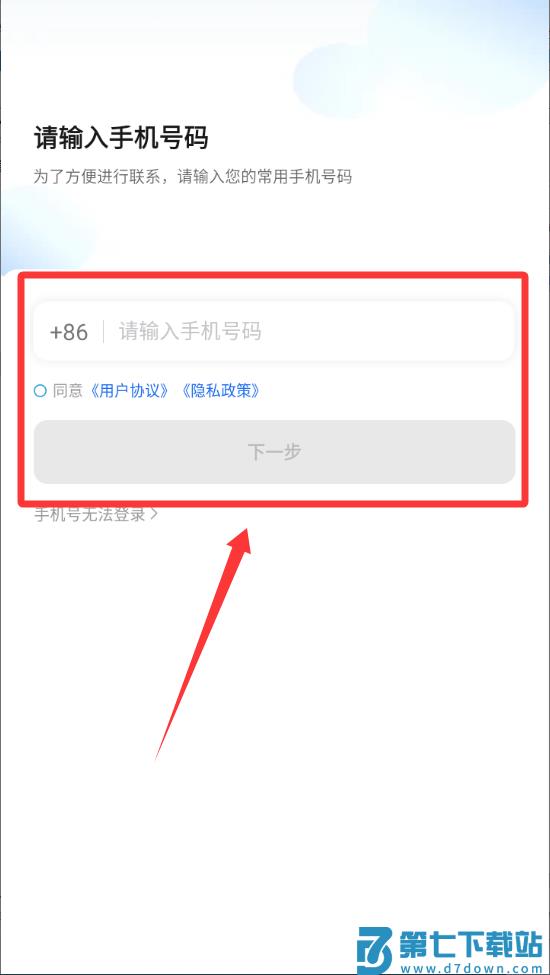 2、输入自己用的手机号点击下一步。