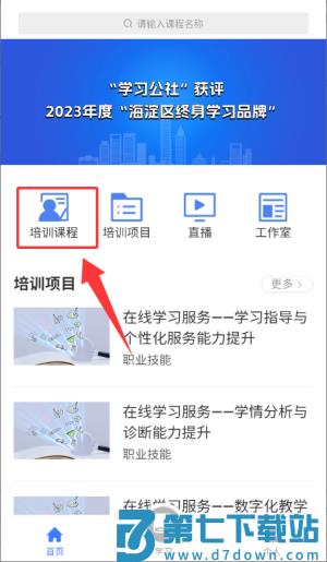 2、于首页选择"培训课程"功能,进入课程列表页面。