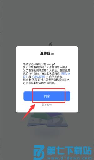 1、在温馨提示中点击"同意",即可进入应用主界面。
