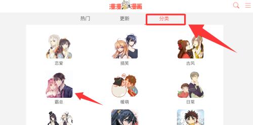 3、点击红色框框里的分类进去有好多题材,点击霸总进去看。