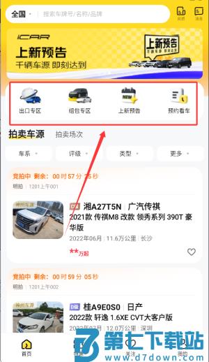 3、首页设有海外出口、批量采购、新品预告及实地验车等特色服务栏目。