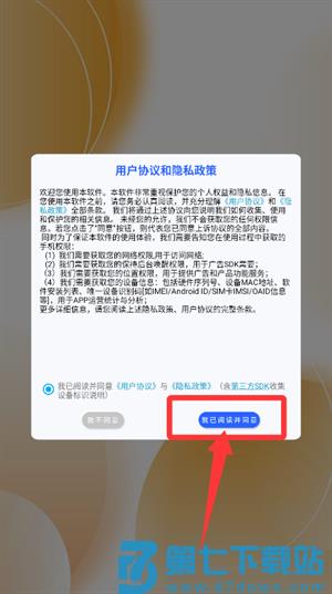 1、启动应用后勾选同意协议,点击确认按钮进入主界面。