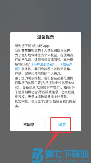 1、在皖小能中点击"同意"温馨提示,进入登录界面。