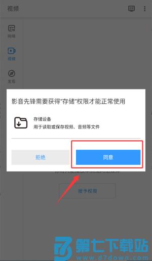 1、启动影音先锋,于权限申请页点击“同意”授权使用。