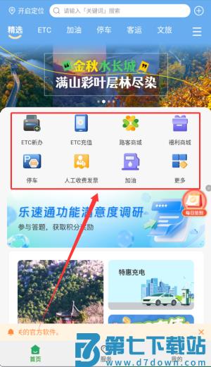 3、首页设有电子标签申办、账户充值、线上商城及用车服务等综合功能入口。