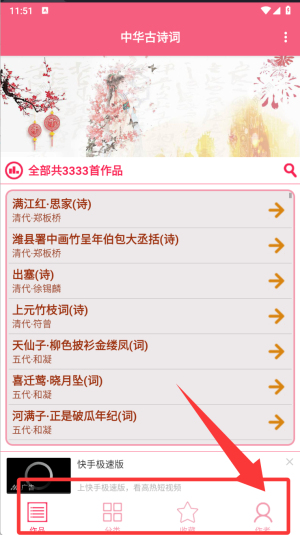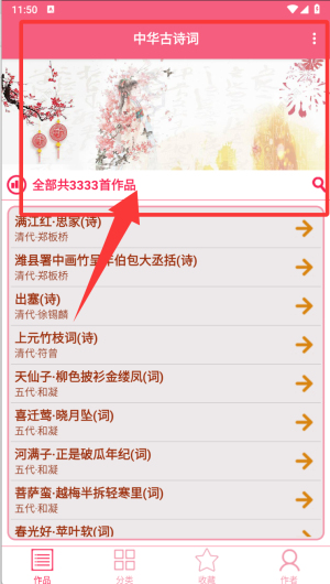 3、在发现页面浏览不同的专题诗单,如山水田园边塞咏物,或者直接搜索你想找的具体诗词名句。