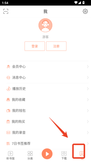 1、首先在应用商店搜索百听听书app并下载安装,打开后使用手机号完成注册和登录。