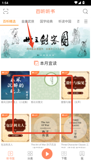 2、在首页或分类中浏览海量正版有声资源,可选择热门频道或根据喜好搜索特定作品。