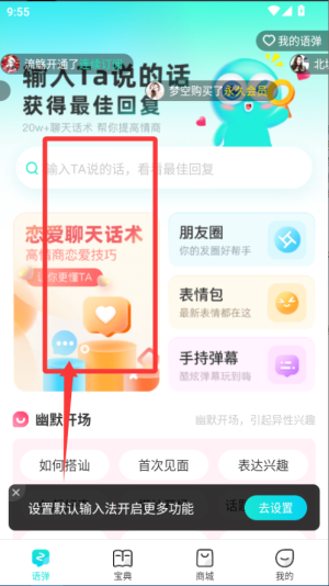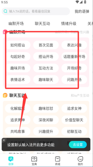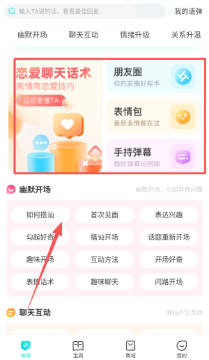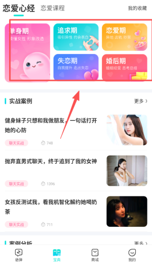 2、在主界面“语弹”或“宝典”板块,根据单身、追求、恋爱等不同阶段,查找对应的恋爱解析与实战案例进行学习。