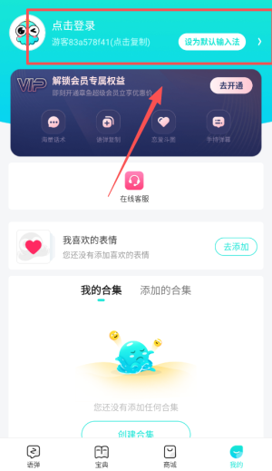 1、打开软件后,先点击“我的”页面进行登录,或复制游客账号使用,可考虑开通会员解锁更多功能如语弹复制与恋爱斗图。