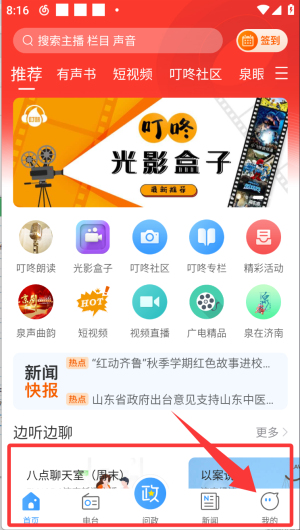 1、首先打开应用商店搜索叮咚fm电台下载安装,完成注册登录就能进入主界面。