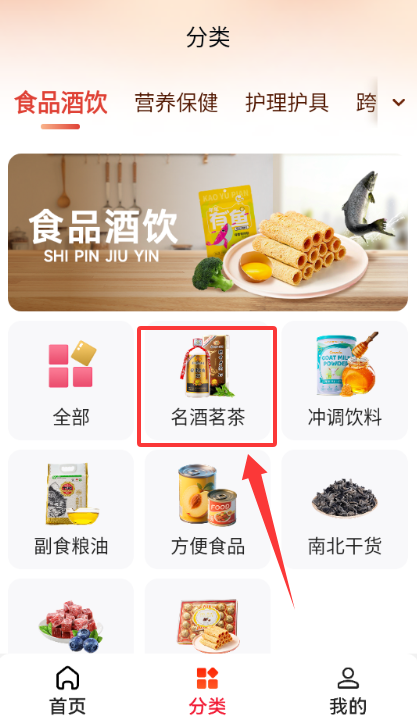 2、在分类页选择名酒茗茶分类,进入商品列表查看商品。