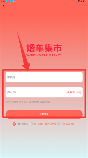 1、在登录界面填写手机号并获取验证码,完成账号登录。