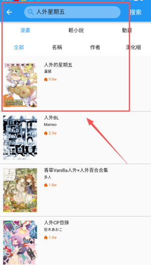 1、打开拷贝漫画App,首先在首页界面中找到搜索框,输入想要查找的漫画或小说名称,能够快速定位所需内容。