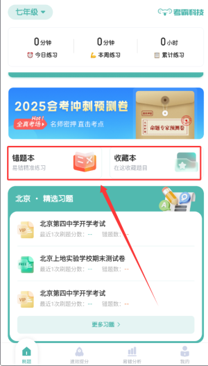 3、首页清晰展示了用于归纳易错题目的错题本以及收藏重要习题的收藏本,方便学生针对性复习与巩固。