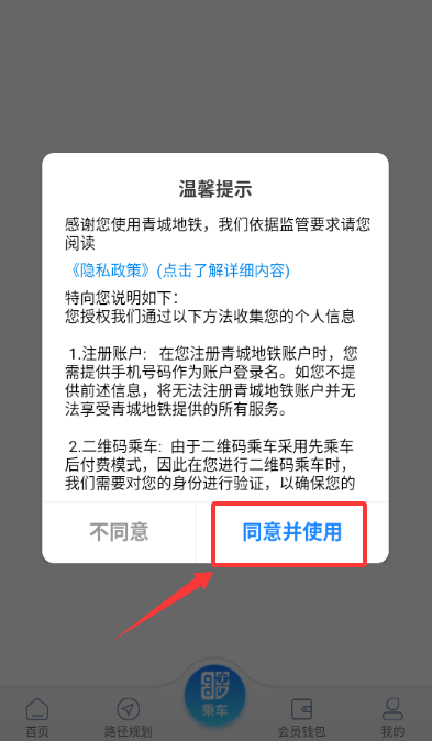 1、于提示弹窗中点选同意并使用,确认后进入登录页面。