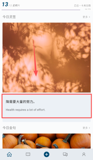 1、下载后打开句摘App 可以先浏览首页推荐的海量优美文案 长短内容都有 看到喜欢的句子直接点击就能收藏到自己的摘抄本里。