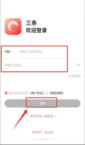 2、在页面点击登录选项,跳转至页面后输入手机号密码并勾选协议。