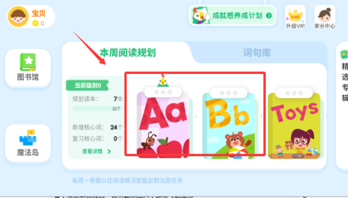 2、根据孩子的年龄与水平,在首页选择合适的阅读级别与主题绘本开始学习。