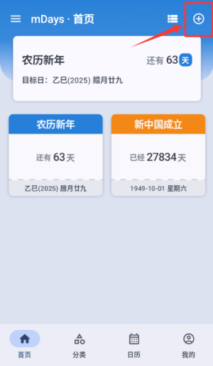 默认分类:默认包含了生日本、生活、工作和学习三个倒数本,可以自定义更多分类