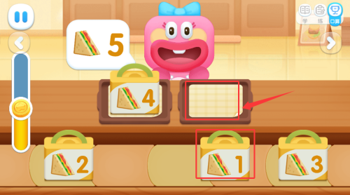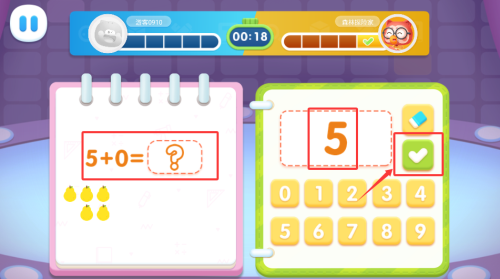3、在互动练习中,拖动物品至空位完成数量分合练习。