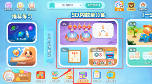 2、进入学习页面后,选择五以内数量分合板块查看学习项。