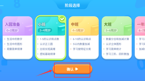 1、于阶段选择页选定小班阶段,确认内容后点击确认按钮。