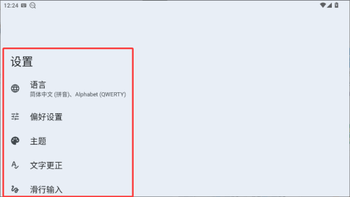 2、进入设置界面,可看到语言、个性化主题等多项配置内容。