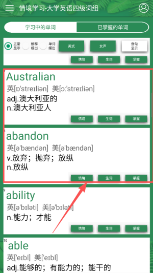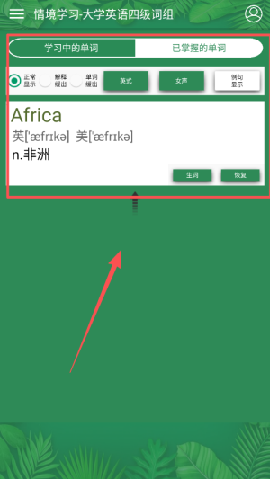 2、每天用背词模式学习新词,看单词选释义或听发音拼写,系统会根据记忆曲线自动安排复习。