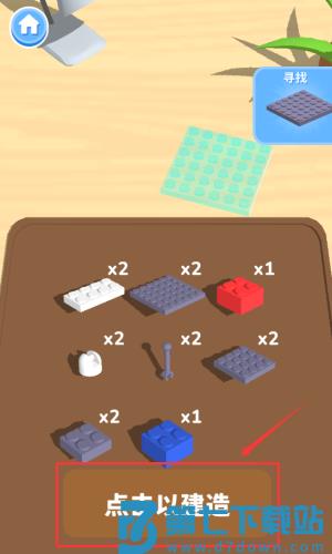 1、点击红框标注的点击以建造按钮,完成积木搭建。