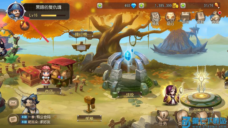 1、进入游戏主界面后点击左上角角色头像。