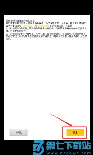 1、阅读用户协议后,点击红框标注的黄色同意按钮继续。
